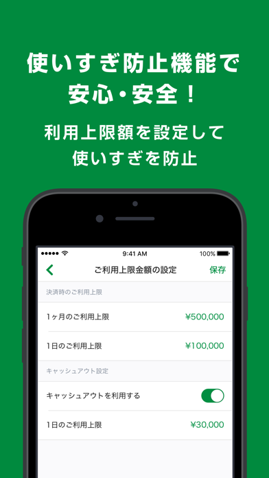 使いすぎ防止機能が搭載されており、1日の利用上限額と1ヶ月の利用上限額をそれぞれ個別に設定することができるため、キャッシュレス決済ならではのトラブルである知らないうちに使いすぎてしまったなどの失敗を防ぐことができます。