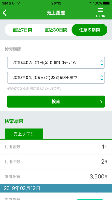 アプリを使えば利用状況を確認することができます。経営分析のためにも定期的にチェックしておきましょう。利用者数、利用件数、決済金額を一日ごと、一カ月ごとに表示することができます。