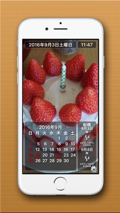 App Storeより引用このアプリは卓上で「日時」「時刻」「カレンダー」「写真」「お天気」を表示します。充電中や仕事中に表示させておくことで、卓上カレンダーや時計、フォトスタンドとして利用することができます。