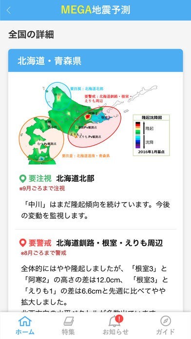 地震科学探査機構で分析した情報を一週間ごとに更新してくれるから大きな変動があった場合や以前までの情報と変わっている時などに必要なものを揃えておいたり家族で話し合いをしておくなど地震の対策をしておくことができます。