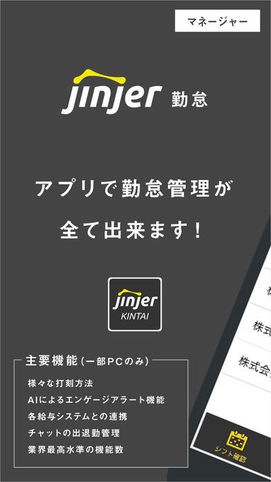 いつでも簡単に勤怠管理ができるjinjer勤怠マネージャアプリ。