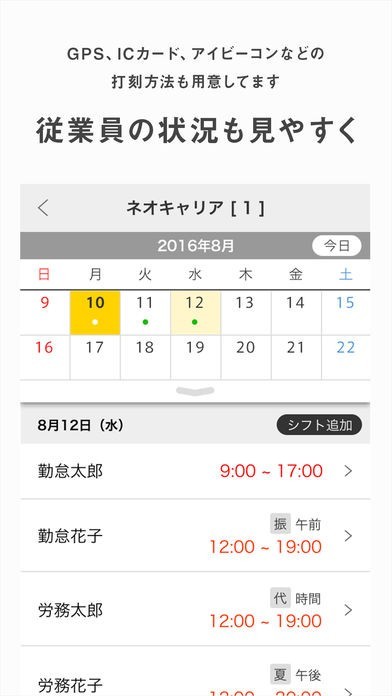 スタッフアプリとマネージャアプリで全てスマホだけで管理が可能!