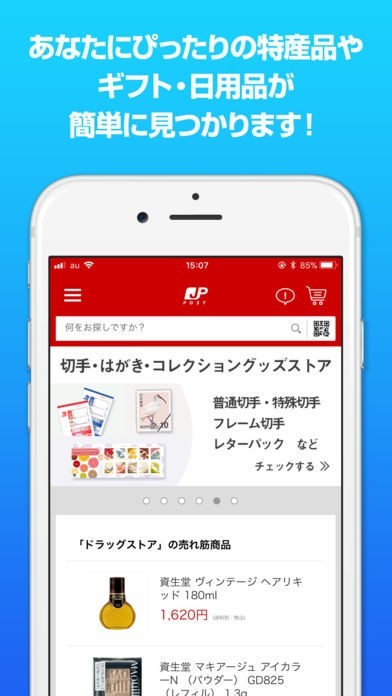 このアプリを使えば手軽に簡単に郵便局で売られている商品をスマホ1つあればいつでもどこでも購入できます。また切手等も買えるのでわざわざ買いに行かなくても切手が買えます。