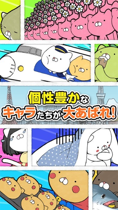 ネコは連続タップで行い、個性豊かなキャラクターで可愛く癒やされる敵を攻撃
