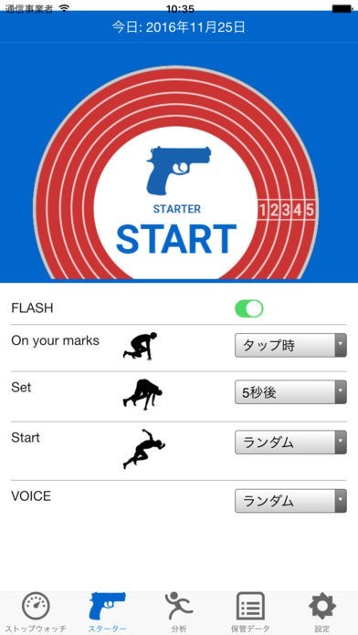 出すことかできるスターター音は一つだけではなく、競技大会に合わせたり好みによって簡単に使い分けることはできます。英語の音声も本番さながらに流すことができ、様々なレベルの陸上競技のレッスンをサポートできます。