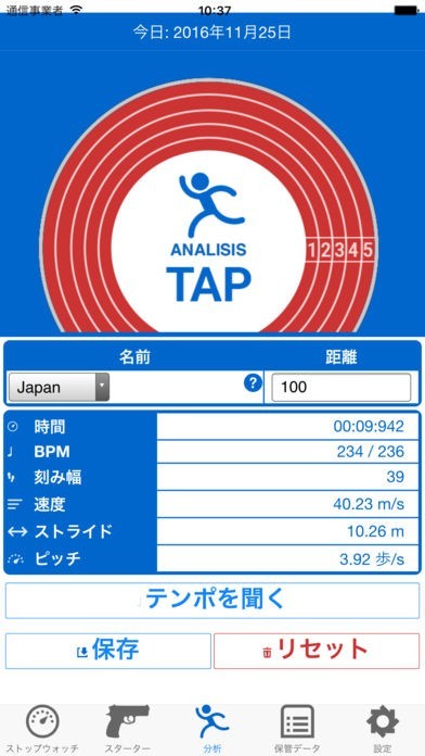 陸上競技などの練習で必要となるストップウォッチ、スターターなどの要素がアプリでは含まれています。また短距離やマラソンといった個人競技だけでなく、リレー競技向けの個人タイムとチームのタイムの計測ができます。