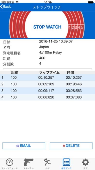 部活でタイムを計るときに使用しています。日々のデータが蓄積されるので伸び率が分かります。