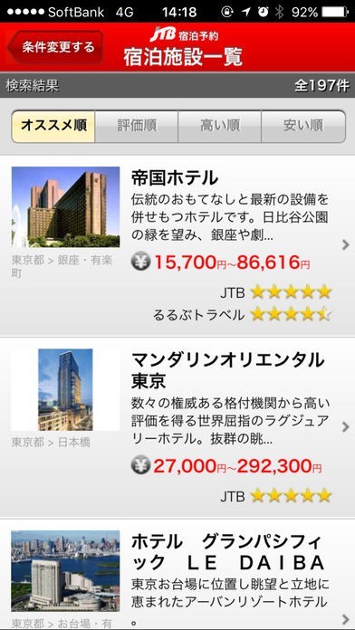 国内大手旅行代理店JTBおすすめの宿泊先を閲覧・予約しよう