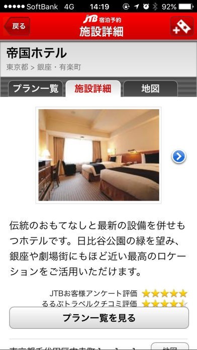 JTBとるるぶジャパンに掲載されている宿泊先を閲覧・予約できる