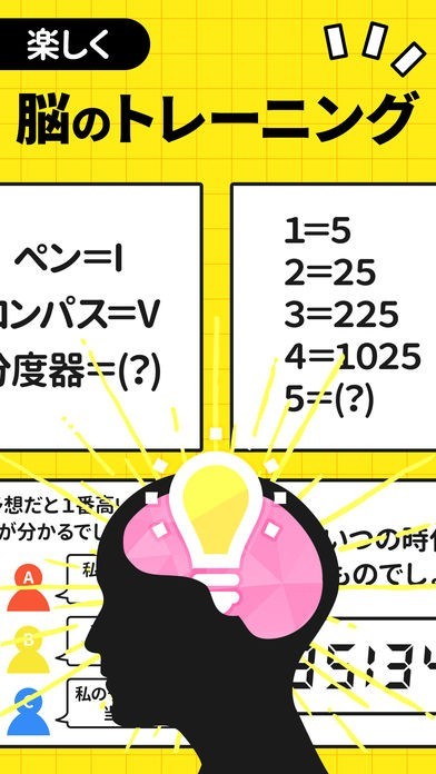 空いた時間や隙間時間に気軽に挑戦できるので、空き時間に行う脳トレにはもってこいのアプリです。深読みしすぎず単純な回答が数多く揃っているので気楽に問題に挑めます。