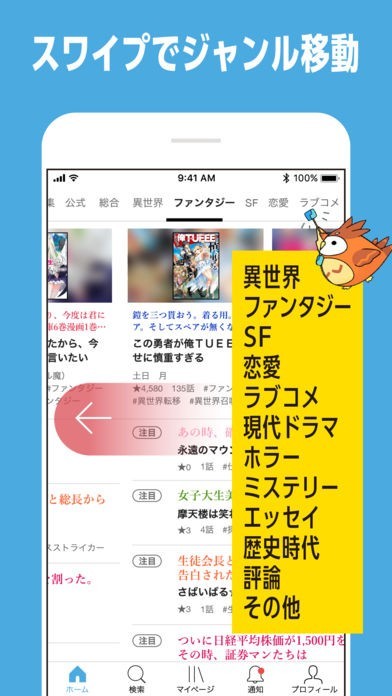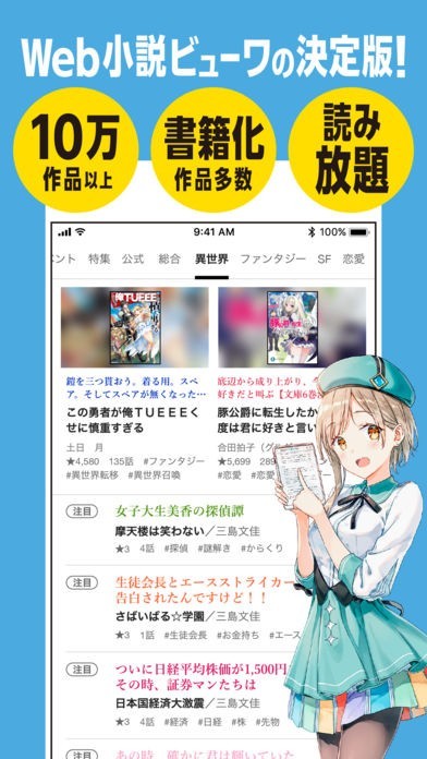 Web小説やオリジナルの漫画が豊富に楽しめるスマホアプリ