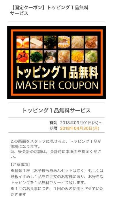 毎回利用可能なトッピング無料クーポンが使えるのでお財布に優しいです。