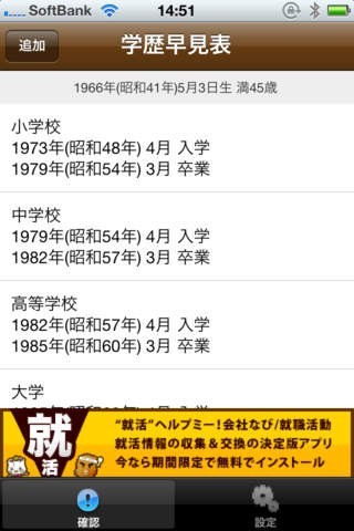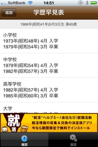 学歴早見表!ES・履歴書簡単作成!「会社なび/就職活動」の就活シリーズ!のスクリーンショット