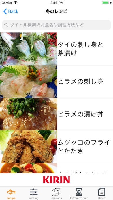 ・一覧上部の検索ウィンドウは「お魚の名前」や「調理方法」などを入力して、タイトルの絞込みに活用できます。