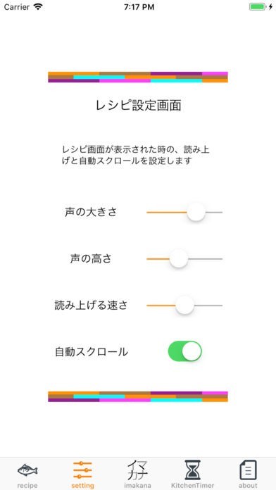 ・読み上げとスクロールは設定画面で調整することが出来ます。