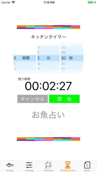 ・キッチンタイマーで調理時間を確認できます。レシピ画面など別画面へ切り替えてもアラーム音とバッジ表示でお知らせします。
