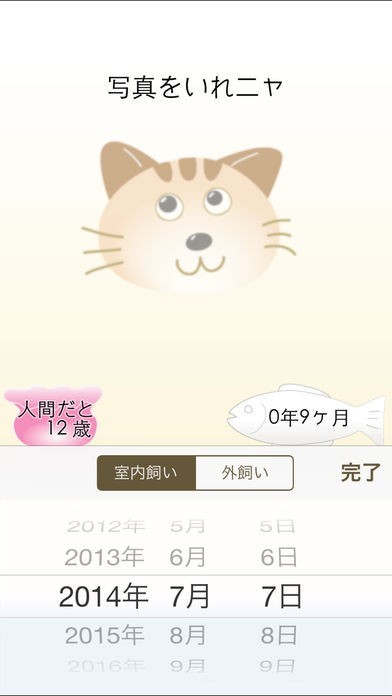 ニャンコいくつ?愛猫の年齢を計算して写真で保存!のスクリーンショット