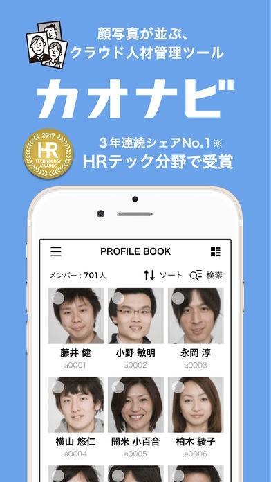 カオナビ は社員の顔写真が画面に並ぶので、人材マネジメントがスピードアップ!
