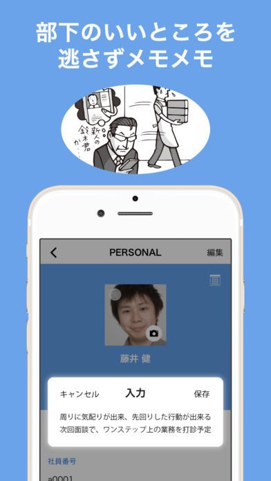 部下のことで気づいたことをその場でアプリからメモできるので、筆記具いらず