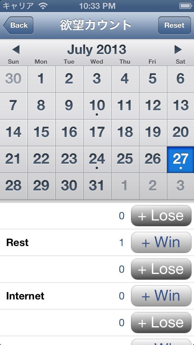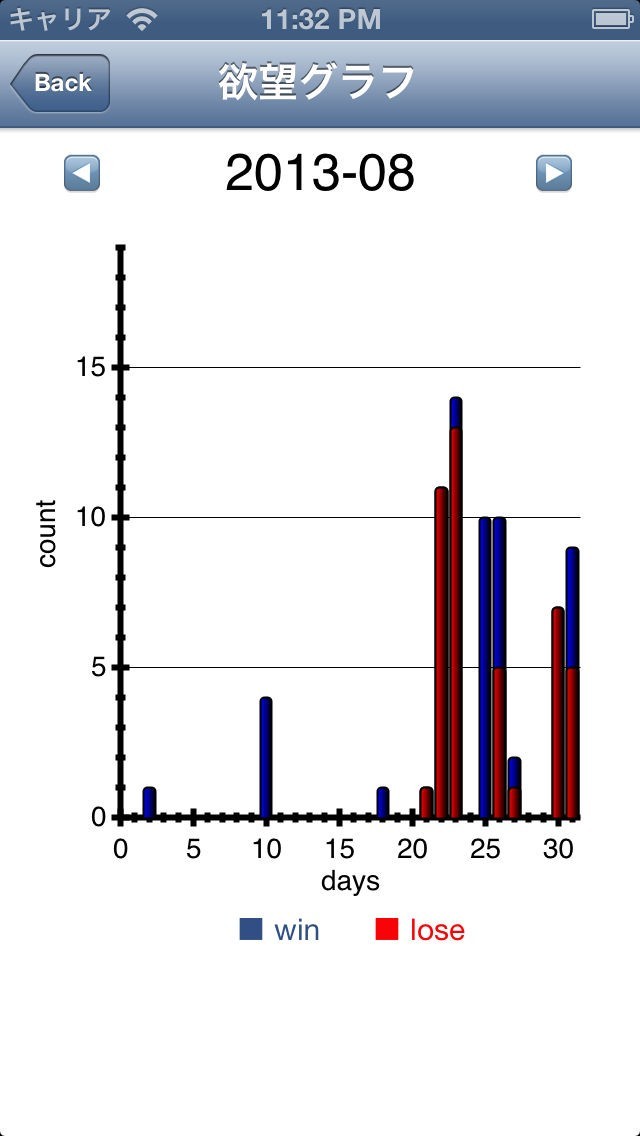 ログ機能により、欲望に勝った数、負けた数を自動または手動で日々記録します。