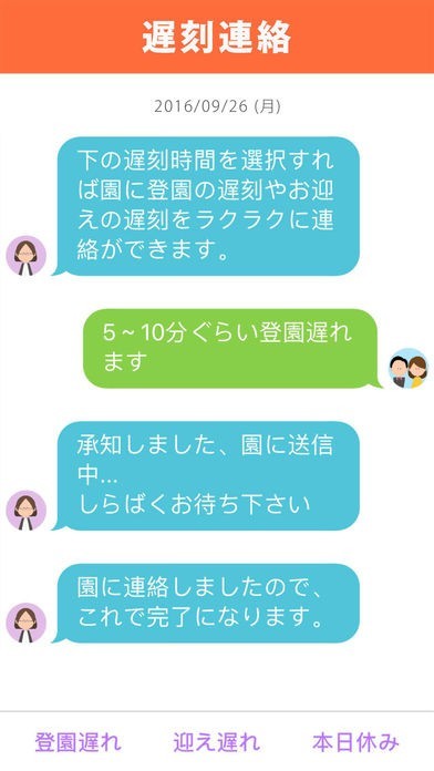 保育園・幼稚園と保護者間の連絡帳を簡単に入力することができます。時計の時間を選択すれば、2ステップで入力可能となります。下書き機能もついており、入力の手間を短縮することができます。