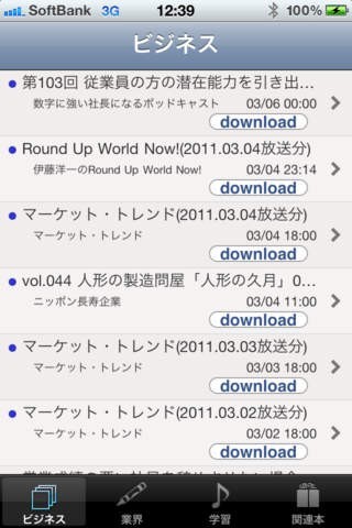 ビジネス系のウェブラジオをまとめて視聴できるポッドキャスト的なアプリです。ビジネス、業界、学習の3つの番組カテゴリーを取得できます。経営やファイナンス、マーケティングや会計、人事などを勉強したい人や、世の中を広く見渡したい人におすすめのアプリです。仕組み的にはPodcastのRSSリーダーになっています。沢山のカテゴリーの中から自分が聞きたいもの、気に入ったものを、番組をダウンロードしなくてもすぐに視聴でき、バックグラウンド再生にも対応しています。