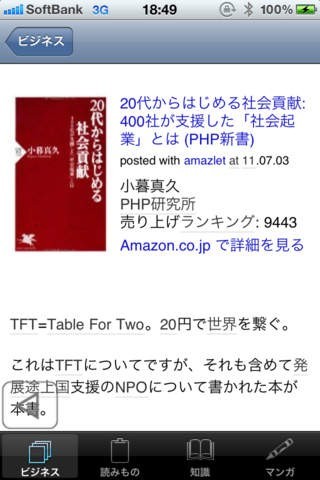 書評◆まとめは、文字通りに新刊書関連の中身を説明したり、優劣などを取り上げて評価を下すアプリです。アプリを立ち上げる事で、書評の種類が画像へと直ぐに表示されます。この部分から興味を持ったタイプを選ぶ事で、載せているブログの内容を簡単に見る事が可能です。文面がきちんと掲載された書評で構成されている為、書物の良し悪しを判断するのに適しております。読書したい気持ちがあるものの、どんなジャンルの本を閲覧して良いのか困っている人達に有効的である書評アプリです。