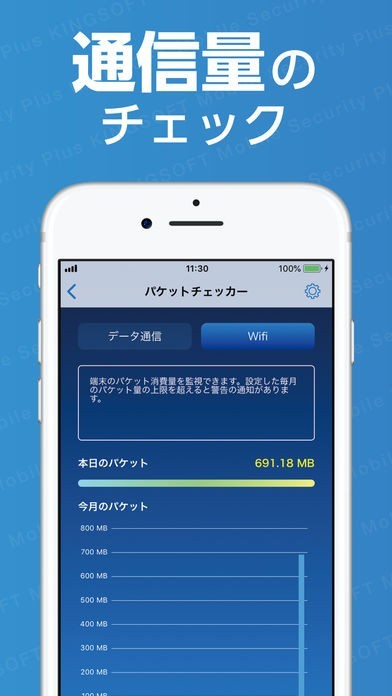 月ごとにパケット通信量を設定しておけば、パケットチェッカー機能によって使用量が設定を超える前に通知されるので、パケットの使い過ぎを避けることができます。海外での使用時にも役に立ちます。