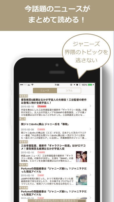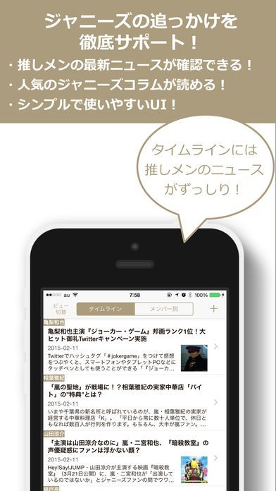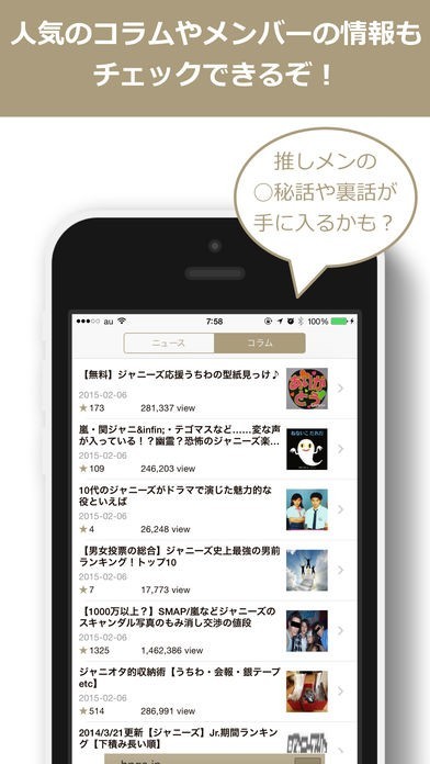 芸能ニュースの中でもジャニーズに関するニュースを見れる芸能ニュースアプリ