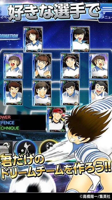 人気サッカーマンガのキャプテン翼のキャラクターたちを集めて、自分だけのオリジナルチームを作ってサッカーシミュレーションゲームを楽しむことが出来るようになっています。