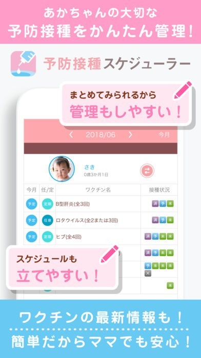 あかちゃんのための最適な予防接種スケジュールを作成できる!