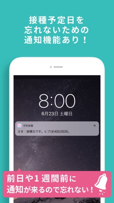 予防接種の日を忘れずにお知らせ。プッシュ通知機能が付いたお母さんに優しいアプリ