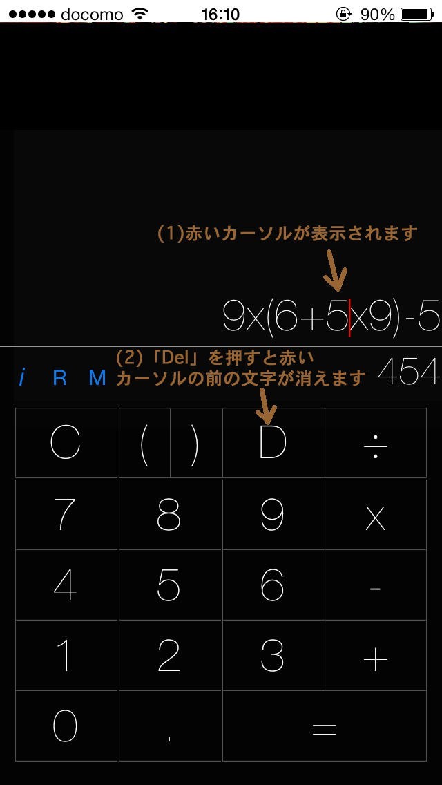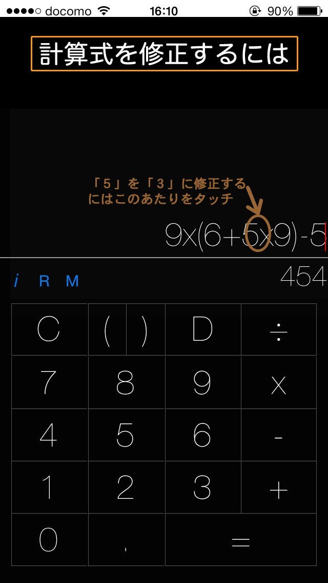 計算式の修正したいところをタッチするとその場所にカーソルが現れ、修正出来る!