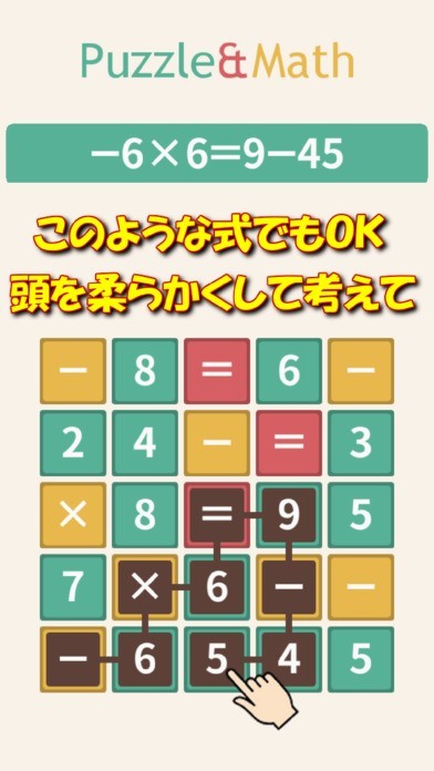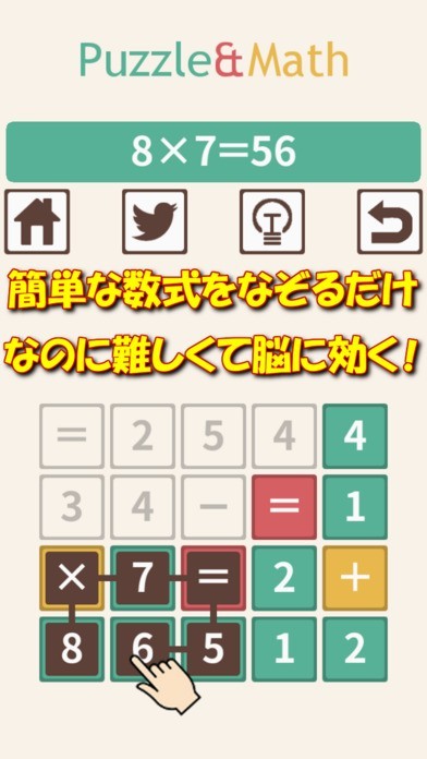 脳のトレーニングにも最適!四則演算の数式が完成するように指でなぞってパネルを消していく!