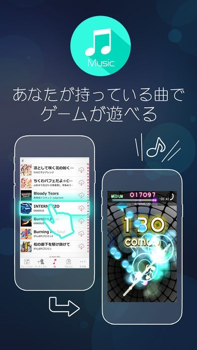 スマホ内の音楽でリズムゲームが作成出来る!オリジナルの譜面にも対応しているゲームアプリ