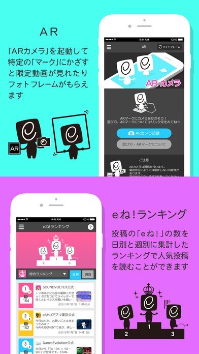 普段ゲームセンターでしか見ることの出来ない自分のゲームデータを、アプリを使っていつでも残して見ることができます!良い成績がでた時には写真付きで自慢出来る機能つきその投稿にたくさんいいねがつくとアプリ内のeね!ランキングにも掲載!更には自分の行きつけの店舗での大会予定などが確認でき、そこでの戦歴も残すことが可能!ゲームセンターの外でも自由にアーケードゲームの腕自慢が可能です!