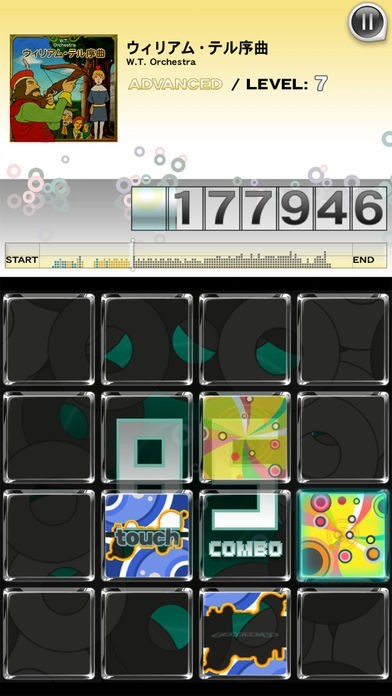音楽に合わせてタッチパネルをタップ!タイミングよくタップするためにリズム感が養われ楽しくなる