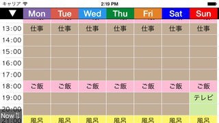 スケジュール表に1週間のイベントが登録出来るようになっています。また予定別に色分けする事が可能なので、複数のタスクを分かりやすく管理したい時に重宝するでしょう。