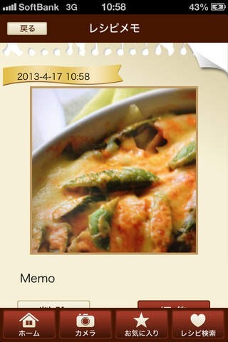 ・自分の作った料理や今後作りたい料理を記録する「レシピメモ機能」