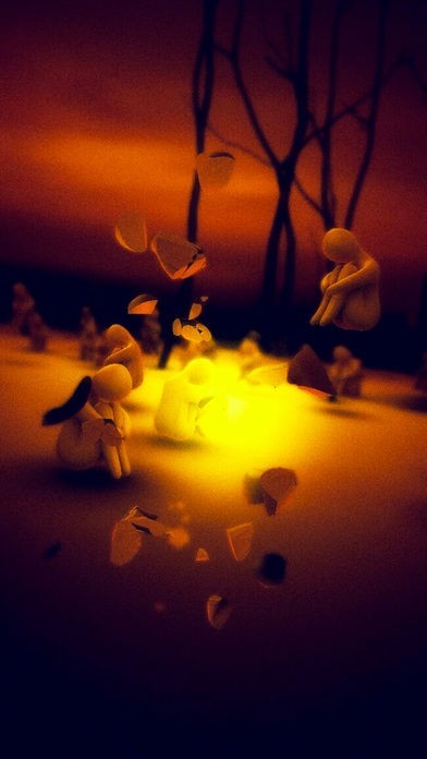 ゲーム内に登場する体育座りをしたオブジェクトはタッチすることで破壊することができます。いかにも消沈した彼らを破壊することで自らの落ち込んだ気分も壊すことができるかもしれません。