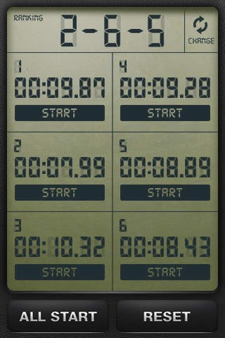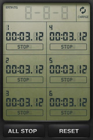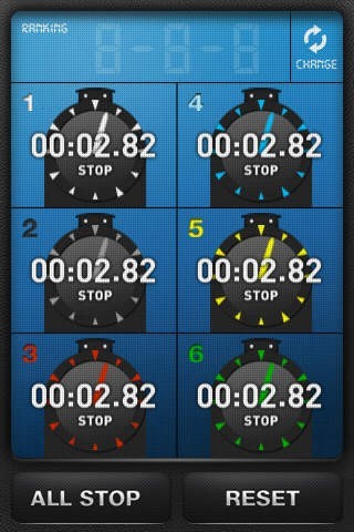 展示ストップウオッチは、一つの画面にストップウオッチが6つある