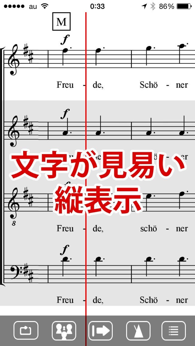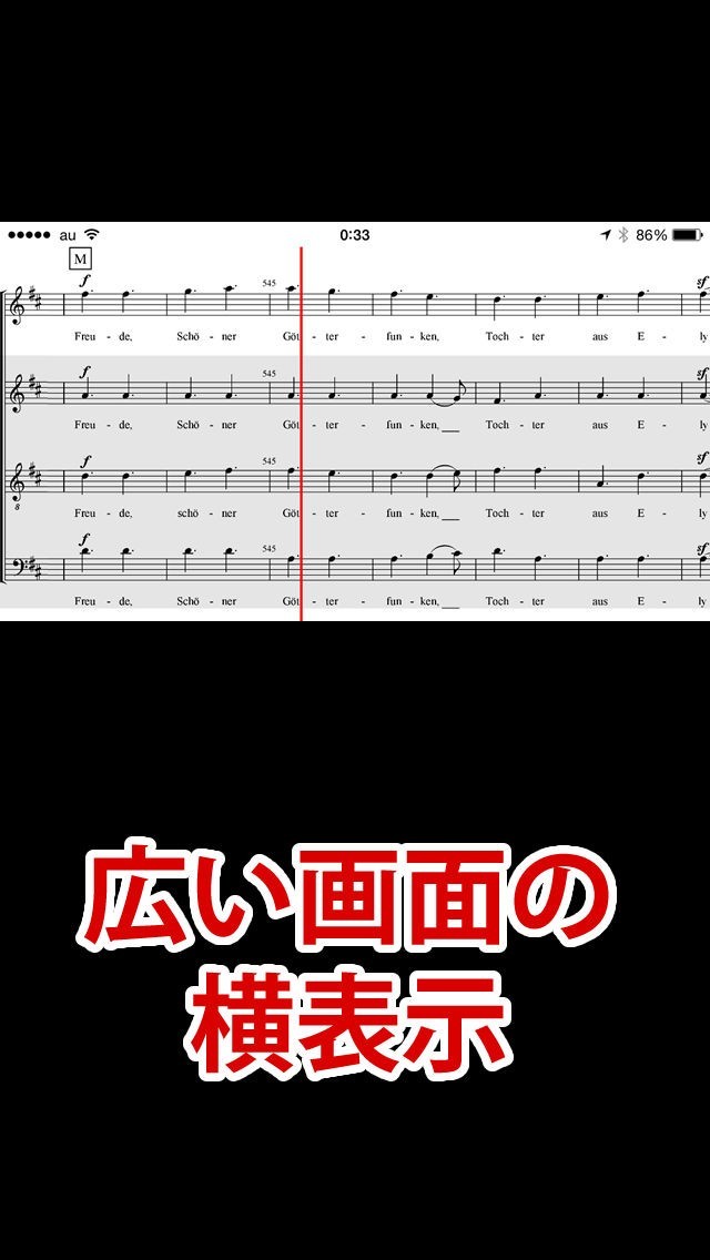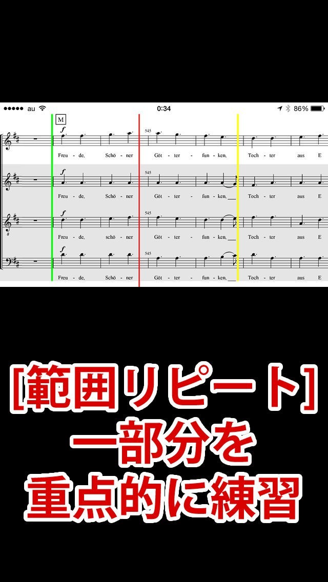 第九を練習することで合唱の力そのものを鍛えることができます。楽譜を見ながらしっかりと音程を取れるようにしてみましょう。スロー再生やフリックで再生位置の移動が簡単に行えるので活用していきましょう。