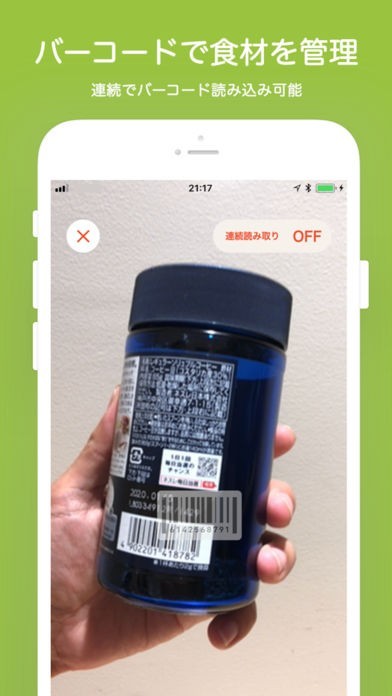 ついつい賞味期限をわすれてしかたなく捨てていたけどこのアプリをと使い始めてから賞味期限が切れる前に気が付けるようになり助かっています!
