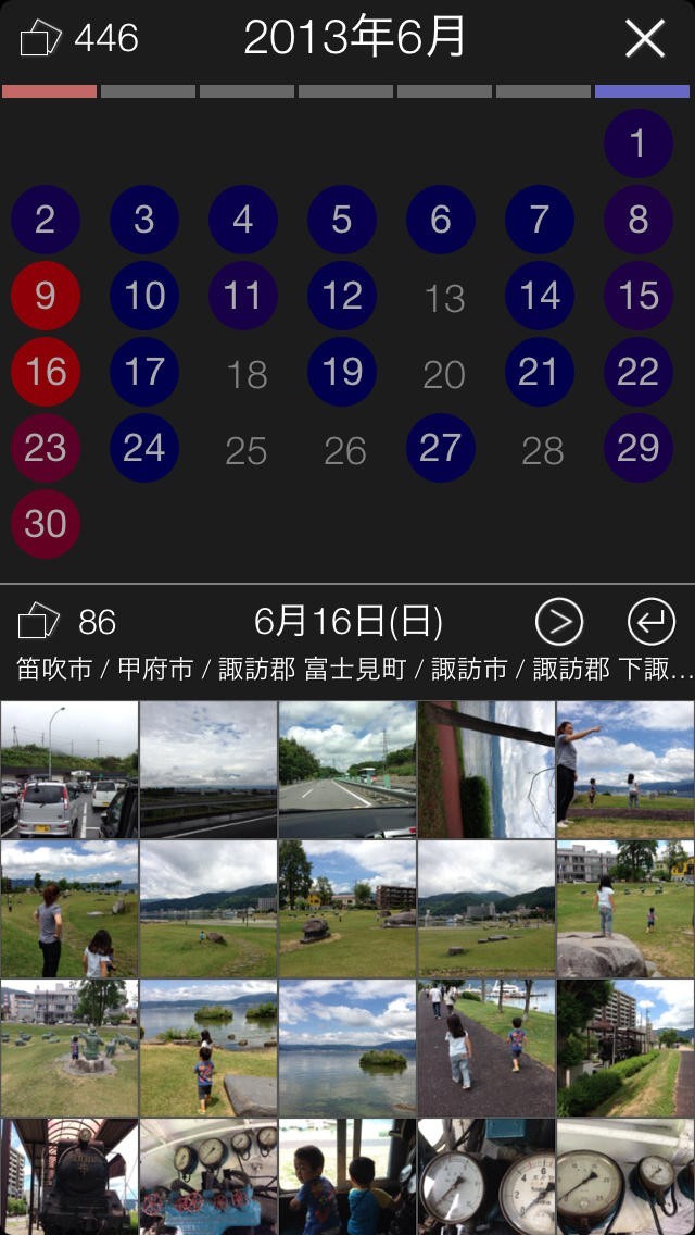 時間と行った場所ごとに写真を撮っておき記録出来る