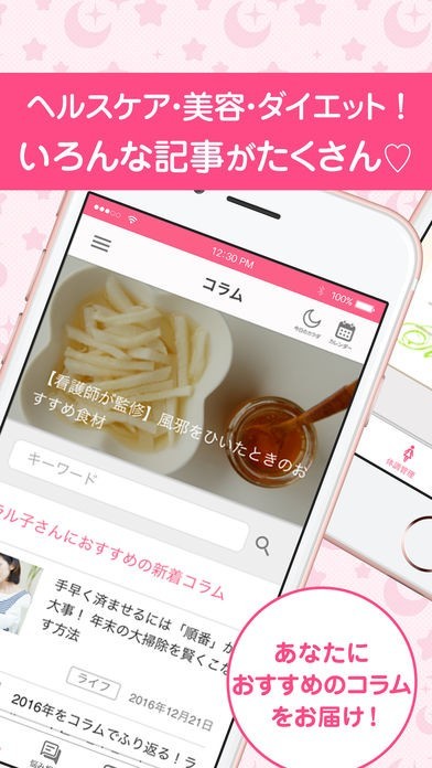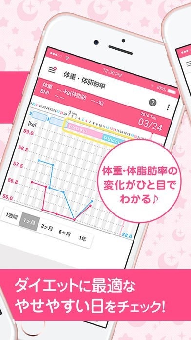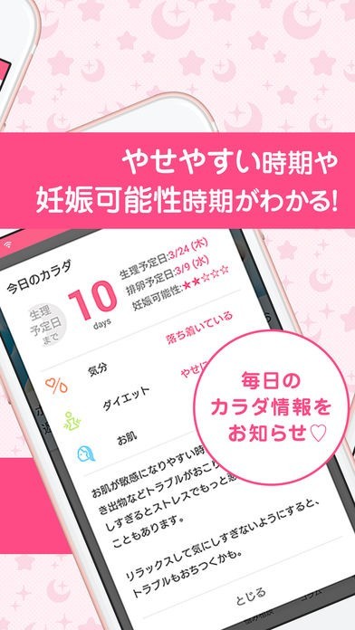 生理を登録することで排卵予定日や痩せやすい日を知らせてくれて体調管理ができます。