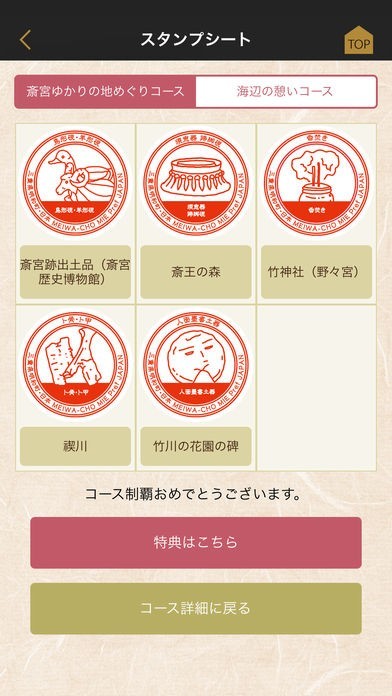 アプリ内には、斎宮・斎王にまつわるストーリーの構成文化財の紹介とともに、文化財などの施設を巡るスタンプラリーをご用意しています。