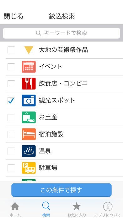 気に入ったスポットを発見したらお気にいり機能で登録することができるようになっていて、次回からはお気に入りボタンをワンタップすることで情報を表示することが可能です。