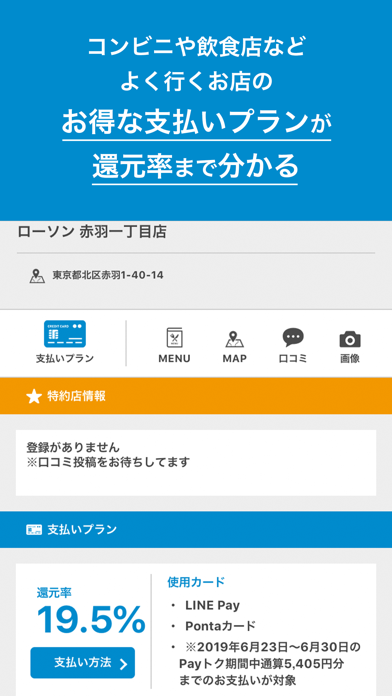 App Storeより引用コード決済やクレジットカード払いができるお店が探せるアプリです。