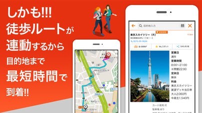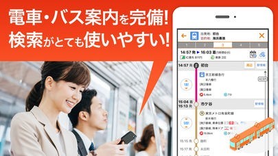 電車やバスの時刻の検索から、目的地の徒歩ルート案内がアプリ1つでできます。