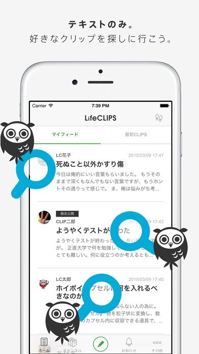 インターネットの発達によってソーシャルメディアを利用している人が増えていますが、多くのソーシャルメディアは写真をメインにしたものが多くなっています。自分は文章を書くことが好きなので、文章を投稿することで日常のコミュニケーションをとりたい人にぴったりなのがLifeCLIPSになります。文章だけに特化しているので良い写真を撮らなければいけないというプレッシャーを感じることなく、思うままに文章を作成して投稿することが出来るアプリです。